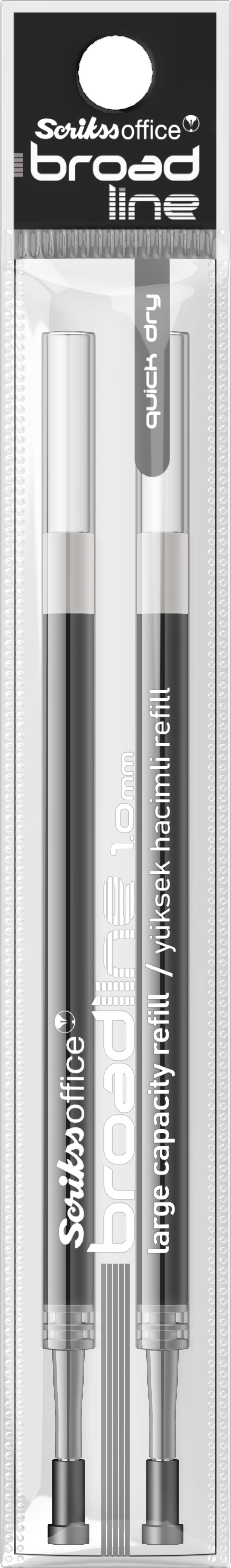 * Broadline Jel kalemlerde kullanılmak üzere tasarlanan refil, 1 mm. uç kalınlığı ve akışkan mürekkep kalitesiyle iş hayatında ve günlük hayatta kolaylık sağlıyor. Yaklaşık yazım uzunluğu 250 m.