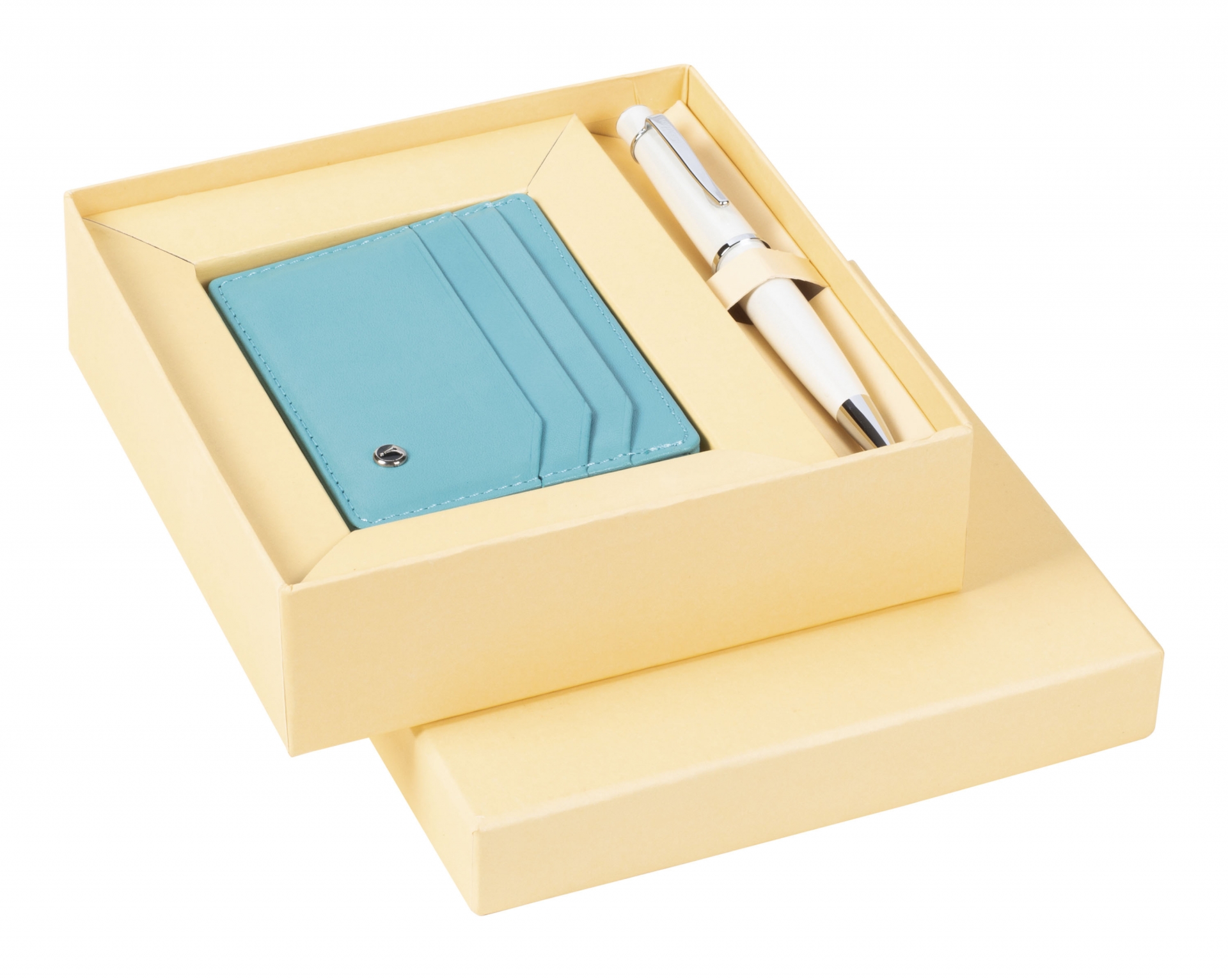 DR3104-C4/2 Hediyelik Set Tükenmez Kalem 62 Chic Beyaz & Deri Kredi Kartlık Turkuaz