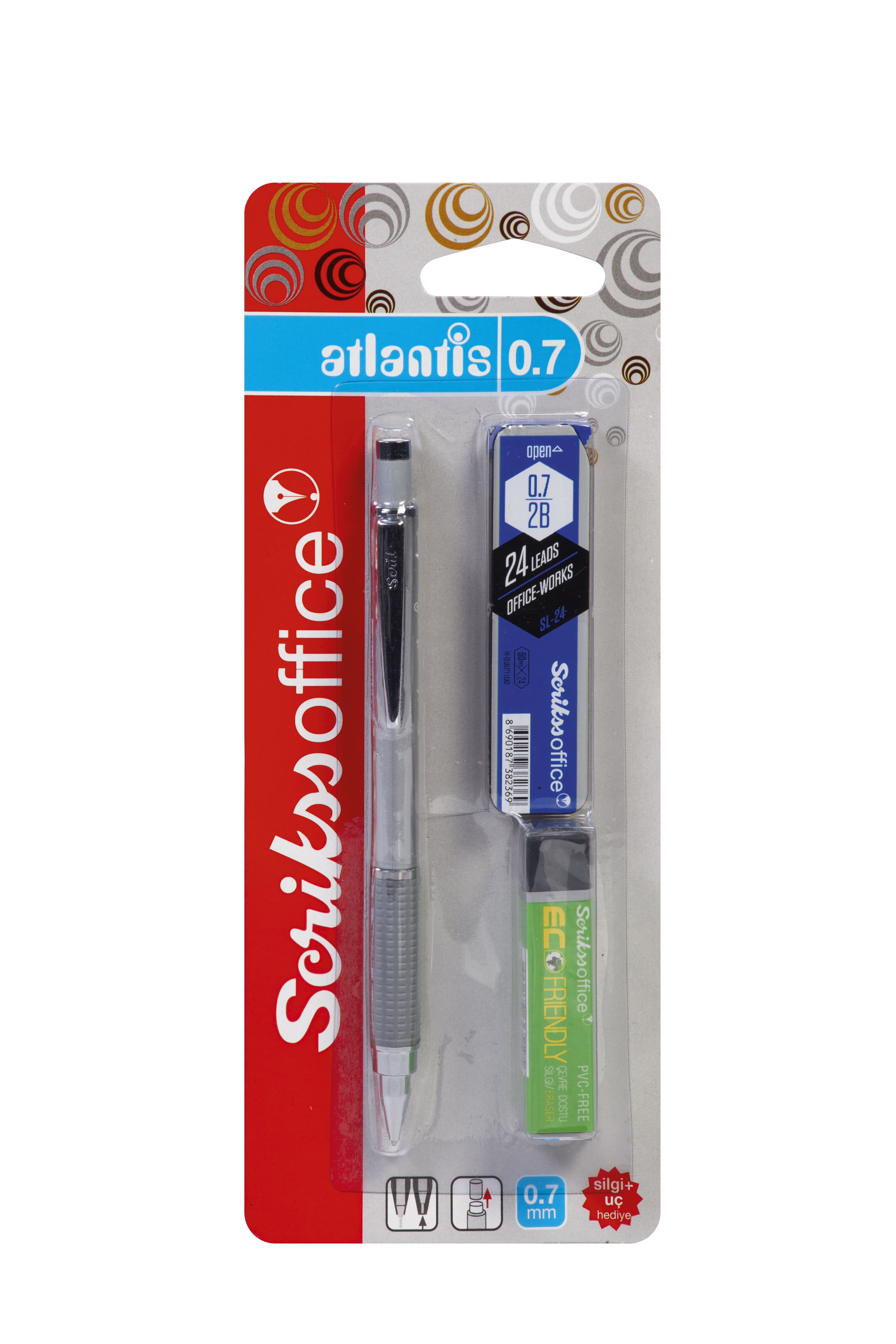 Atlantis Mekanik Kurşun Kalem 0.7 mm Gümüş - Silgi - Min 3'lü Blister Ürün görseli