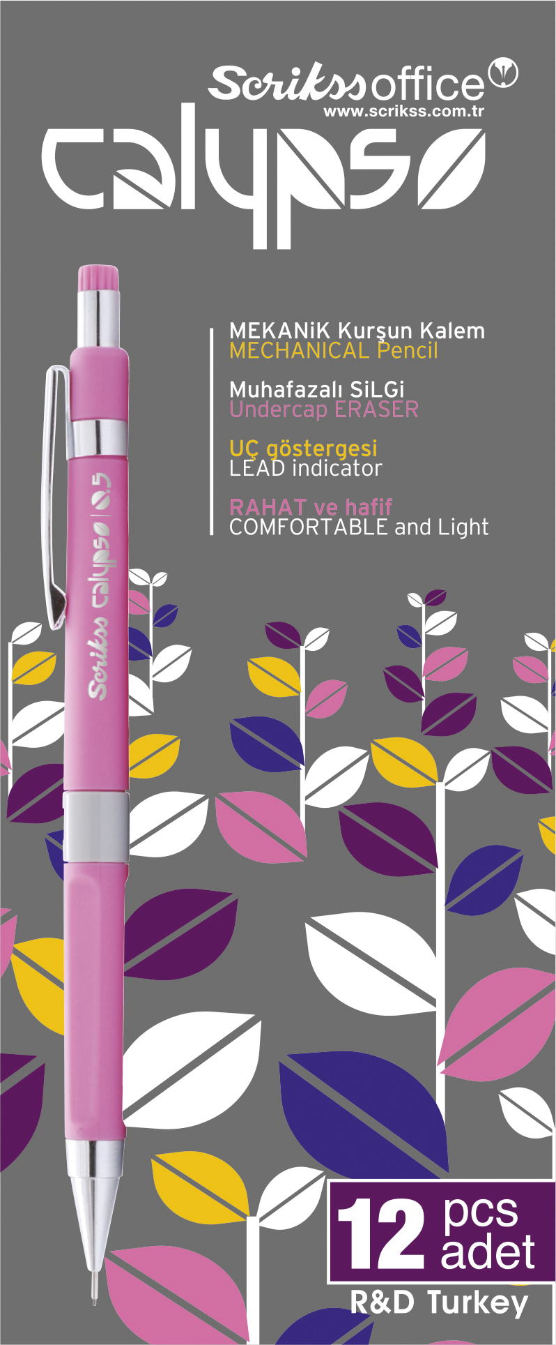 * Calypso Mekanik Kurşun Kalemleri, adını Homeros"un Odysseia destanında adı geçen gizemli tanrıçadan alır. Zarif tasarımı, yumuşak bir tutuş sağlayan kaplaması ve canlı renklere sahip bu deniz perisine siz de ilk gördüğünüz andan itibaren aşık olacak ve elinizden düşüremeyeceksiniz.