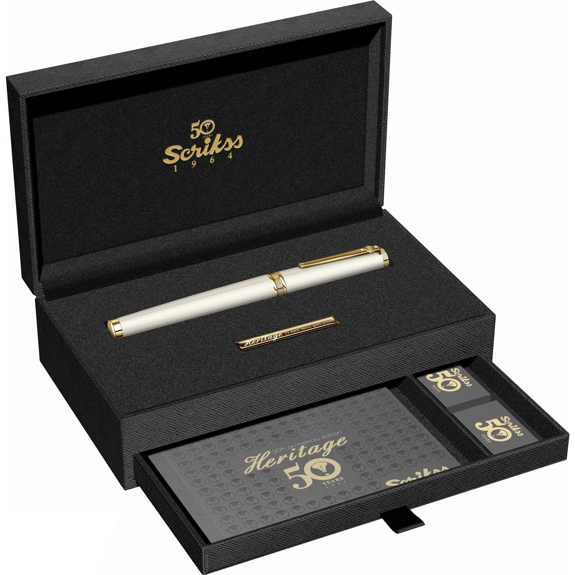* Scrikss"in 50. yılına özel olarak tasarlanıp üretilen Heritage serisi, koleksiyonerlere ve yazmayı tutku haline dönüştürenlere benzersiz bir deneyim sunuyor. Endüstriyel tasarımcı Kunter Şekercioğlu tarafından tasarlanan Heritage2 serisi, tasarımda sadeliği tercih edenlere özel olarak sunulmuştur. Şık ve klas görünümüyle ile dikkat çeken, elde duruşuyla konforlu bir yazı deneyimi sunan Heritage serisi, koleksiyonunuzun en değerli parçalarından olacak.