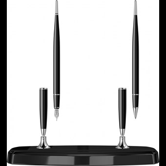 İkili Masa Takımı Siyah Mermerli 17W Dolma Kalem & Tükenmez Kalem Krom Ürün görseli