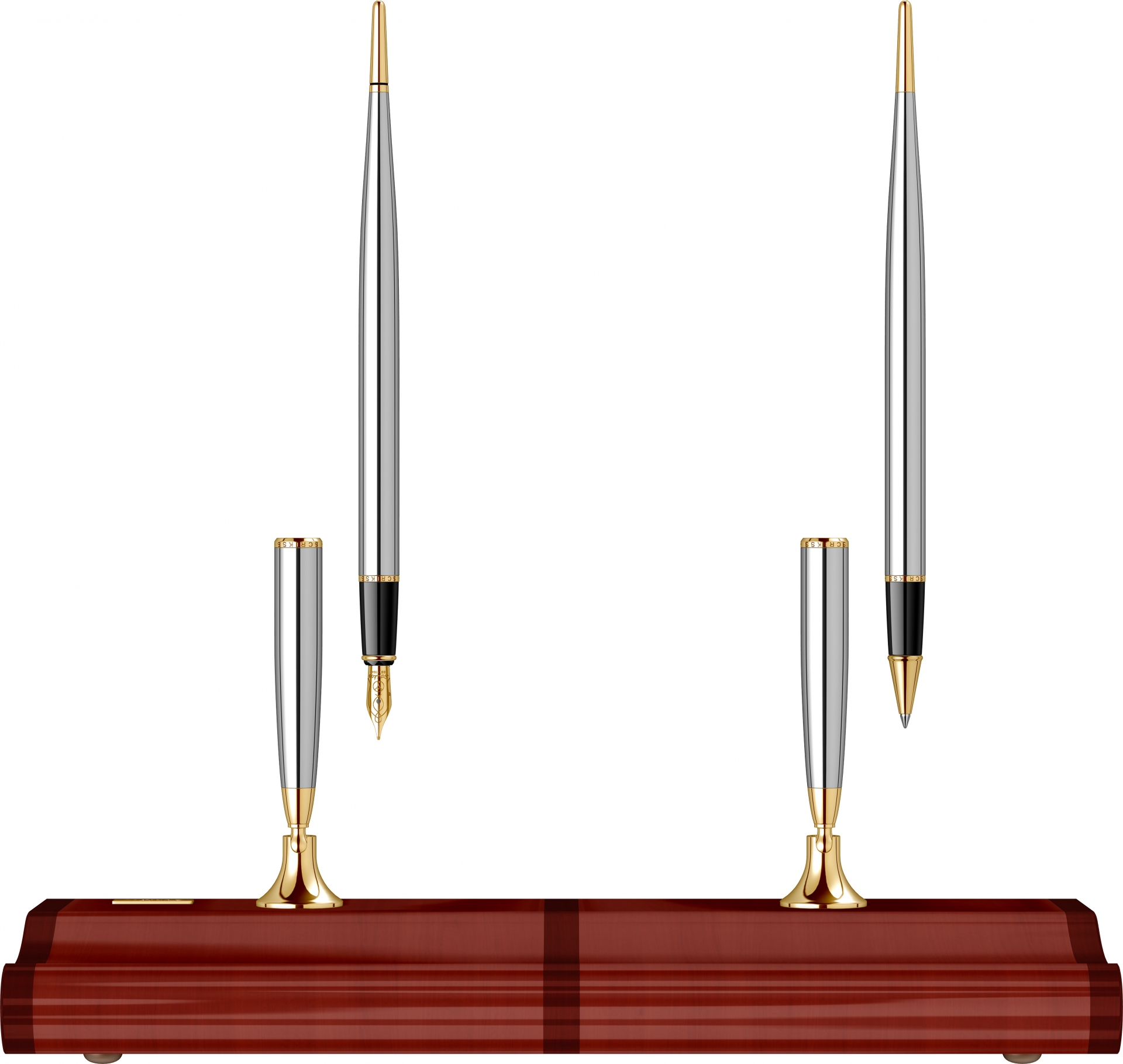 İkili Masa Takımı Parlak Ceviz Ağacı Dolma Kalem & Tükenmez Kalem Gold Krom Ürün görseli
