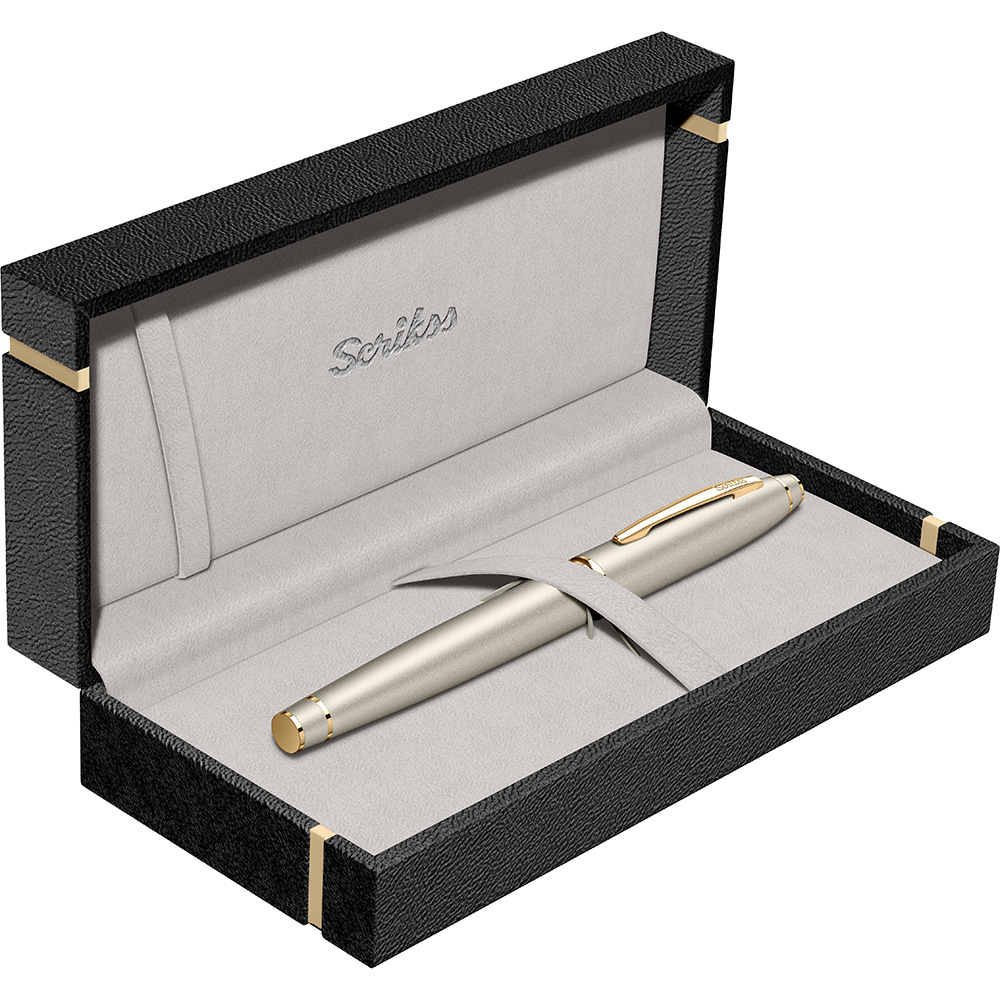 • Özel saten altın renkte metal kapak ve gövde